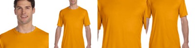 Our color-locking tee has a soft hand, wicks moisture and is energized with an allover heather pattern. 4.1-ounce, 100% polyester jersey with PosiCharge technology Removable tag for comfort and relabeling Set-in sleeves