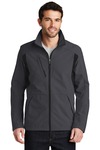This sleek, tech-inspired soft shell resists wind, repels water and features an undeniably on-trend colorblock look. 100% polyester woven shell bonded to a water-resistant film insert and a 100% polyester microfleece lining 1000MM fabric waterproof rating 1000G/M2 fabric breathability rating Zippered chest pocket Molded center zipper Hidden front zippered pouch pockets