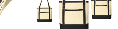 Perfect for the beach, shopping and events, these durable totes have open tops, contrast handles and contrast bottoms for classic good looks. 15.5-ounce, 100% cotton canvas body; 11-ounce, 100% cotton canvas handle trim and bottom Sturdy, reinforced webbing handles Exterior front pocket for easy decoration access Interior hanging pocket with hook and loop closure to secure valuables Dimensions: 16.5'h x 14'w x 7.5'd; Approx. 1,732 cubic inches Note: Bags not intended for use by children 12 and under.