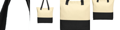 This versatile cotton tote has colorblock handles and bottom for on-trend style and a modern look. 10-ounce, 100% cotton twill body; 11-ounce, 100% cotton canvas handles and bottom Reinforced self-fabric handles with stress point stitching Interior metal snap closure Dimensions: 15.5'h x 14.25'w x 4.5'd; Approx. 994 cubic inches Note: Bags not intended for use by children 12 and under.