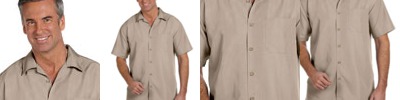 - Short-sleeve camp shirt with special shadow weave