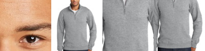 Heavyweight 100% polyester matte brushed tricot; Heat-seal label; Quarter-zip pullover style; Contrast color inserts; Set-in sleeve; Front pouch pocket; Self-fabric cuffs and bottom band;