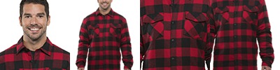 100% poly lining; 4.1 oz. 55/45 cotton/poly flannel shell; Quilted nylon lining; Button-down front; 2 chest pockets with hook and loop flaps; Side pockets;