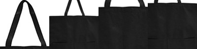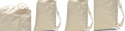 12 oz cotton canvas; 18" x 24"; Cotton web handles; Drawstring closure; Non-branded label/tag;