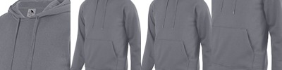 9 ounce 60% cotton/40% polyester athletic fleece ; Jersey-lined hood; Set-in sleeves ; Front pouch pocket ; Rib-knit cuffs and bottom band; No drawcords;