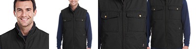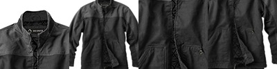 10 oz. 100% cotton canyon cloth™ canvas; 12 oz. snow top polyester sherpa lined collar and back yoke; Double chest patch pocket with snap closure ; Quilted nylon-lined body with 3oz of polyfil insulation; Triple-needle stitching to reinforce high stress seams; Heavy-duty metal zipper with easy grab puller; Inside cell phone pocket;