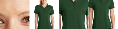 Stay comfortable before, during and after the round in this sophisticated style. Dri-FIT moisture management technology helps keep you dry and focused. Contrast stitch details on the seams and collar. Tailored for a feminine fit. Other features include a self-fabric collar, three-button placket and open hem sleeves. A contrast heat transfer Swoosh design trademark is on the left hem. Made of 4-ounce, 100% polyester heathered jersey Dri-FIT fabric.