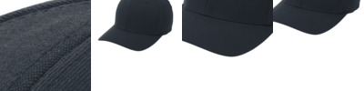 Fabric: 92/8 poly/spandex; 100% polyester undervisor Structure Structured Profile: Mid Features: Seam-sealed, quick-drying, 3-layer sweatband with stain-blocking technology, 4 die-cut vent eyelets Closure: Stretch fit