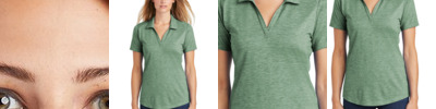 This sophisticated tonal heather polo has a slight slub texture and performs with moisture wicking and stretch for a polished look.