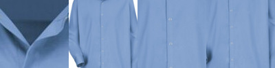 - Two-piece, lined, banded, topstitched, button-down with contrasting inside collar band