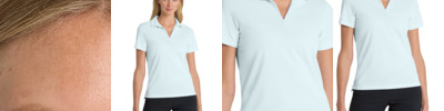 An understated pebble texture meets high-performance moisture -wicking from Dri-FIT fabric in this Nike Golf style. Tailored for a feminine fit and designed to keep you comfortably dry, features include a self-fabric collar, four-button placket and open hem sleeves. Pearlized buttons are selected to complement the shirt color. The contrast Swoosh design trademark is embroidered on the left sleeve. Made of 3.9-ounce, 100% polyester.