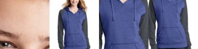 - Three-panel hood with two-tone, textured drawcord