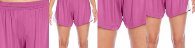 5.3 oz., 91% polyester, 9% spandex body ; 4.7 oz., 91% polyester, 9% spandex pointelle mesh side panels in Sport Silver; moisture-wicking and anti-microbial; cationic dyes to ensure superior brightness and excellent color fastness; elasticized waistband with flat internal drawcord; 4" inseam;