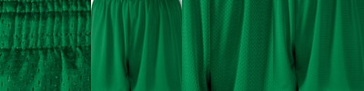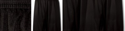 100% polyester • 3-oz. • 70-denier mesh with solid tricot liner, 6" inseam • athletic cut • covered elastic waistband and draw cord • Sizes: S-L