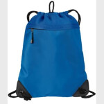 Just right for the beach or by the pool, this large cinch pack will easily hold shoes or a change of clothes. 100% polyester microfiber, 100% polyester air mesh Black drawcord Front zippered pocket Reinforced bottom grommets Dimensions: 18"h x 14.5"w Note: Bags not intended for use by children 12 and under. Includes a California Prop 65 and social responsibility hangtag.