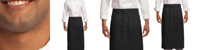 With three pockets on both sides, this durable, reversible apron is versatile, as well as stain and wrinkle resistant.