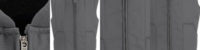 100% polyester anti-pill fleece, 7.7 oz./yd2/260 gsm; fleece chin guard; concealed brushed tricot-lined lower pockets; audio port access through inside pocket;