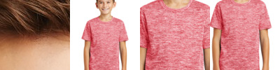 Our color-locking tee has a soft hand, wicks moisture and is energized with an allover heather pattern. 4.1-ounce, 100% polyester jersey with PosiCharge technology Removable tag for comfort and relabeling Set-in sleeves
