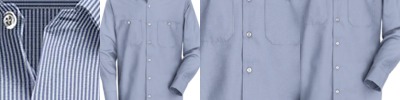 4.1 oz., 60% cotton, 40% polyester; fine yarn count shirting; true Non-iron performance straight from the dryer; stain release finish; patented pucker-free seams; specially fused collar, cuffs and placket; split back seam with bias cut back yoke; pearlized buttons; straight collar; front and back princess seams for flattering feminine fit; bust darts for a flattering feminine fit;