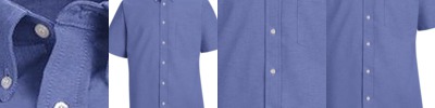 3.4 oz., 55% cotton, 45% polyester; Fine yarn count shirting; True Non-iron performance straight from the dryer; stain release finish; Classic Fit for professional appearance; Patented pucker-free taped seams; Fused collar cuffs and placket; Split back seam with bias cut back yoke; rolled button-down collar; adjustable Comfort Collar for up to an inch of stretch at neck; left-chest pocket; pearlized buttons;