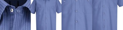 3.4 oz., 55% cotton, 45% polyester; Fine yarn count shirting; True Non-iron performance straight from the dryer; stain release finish; Patented pucker-free taped seams; Fused collar cuffs and placket; Split back seam with bias cut back yoke; pearlized buttons; straight collar; front and back princess seams for a flattering feminine fit; bust darts for a flattering feminine fit;