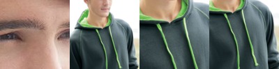 - 75% poly/13% rayon/12% cotton grey heather fleece lined body, sleeves and hood