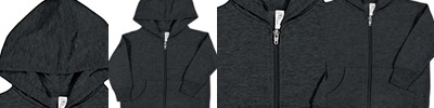 - Solid fleece body with charcoal fleck hood, drawcord and sleeves