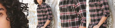 - Three woodtone buttons on a clean-finished placket with a reinforced box
