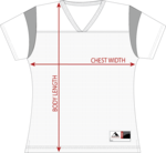4.4 ounce 100% polyester tricot mesh * 2.2 ounce 100% polyester dazzle fabric yoke and sleeves * Outside locker label * V-neck collar * Not to be worn with pads * Front and back yoke large enough for embellishment * Set-in sleeves