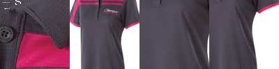 - Contrast color raglan sleeves, collar, "V", and waistband