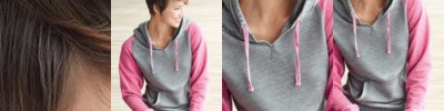 matching flat knit collar; spandex enhanced rib knit cuffs;