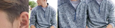 - Topstitched rib collar, taped neck