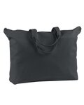 Available in a variety of colors, this sturdy cotton canvas tote features long, comfortable handles and side gussets.
